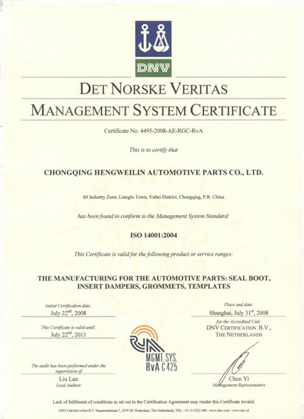 重庆恒伟林汽车零部件有限公司成立于1999年,位于重庆市渝北区空港工业区,约800名员工,是一家专业设计制造橡胶件,橡胶金属组合件,PU/EPDM 发泡,冲压及注塑件的厂家。 公司的主营产品为:橡胶保护套、橡胶波纹管、橡胶衬套、防尘罩、减震断音缓冲橡胶件、减震与转向衬套类橡胶金属组合件等。 产品主要用在汽车/摩托车的传动、控制、转向、减震、发动机等系统上,广泛用于在宝马、福特、丰田、大众、雷诺、沃尔沃、雪铁龙、日产、本田等主流车型上。 公司已经通过了IATF16949质量管理体系和ISO14001 环境管理体系认证。被多家客户评为“优秀配套单位”、“质量先进单位”。