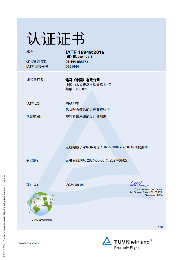 | 证书 | 有 | 证书 | IATF 16949、ISO 14001、ISO 45001 |